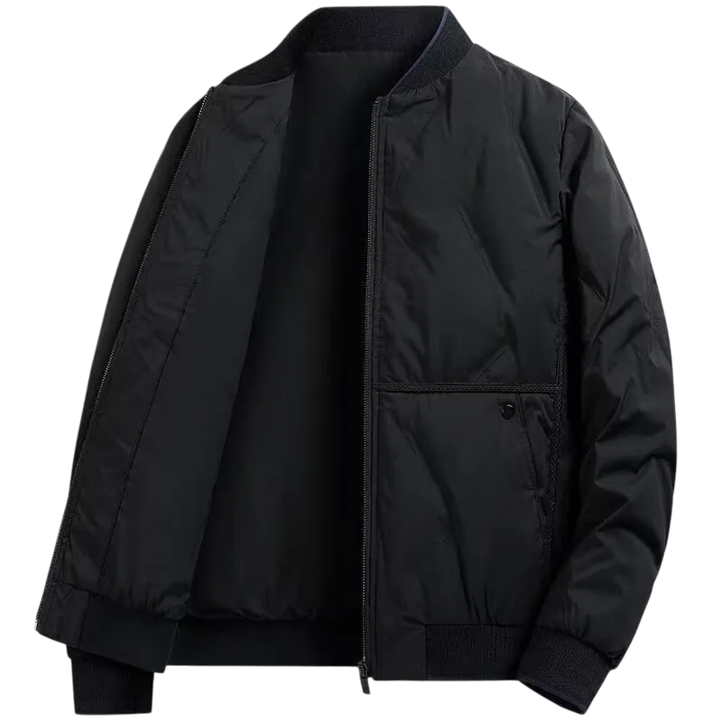 Stilfuld herre efterårs flyverjakke med baseballkrave, lynlås, lommer, høj kvalitet POLYESTER, tilgængelig i forskellige farver, ideel til kolde dage. Fuld beskrivelse