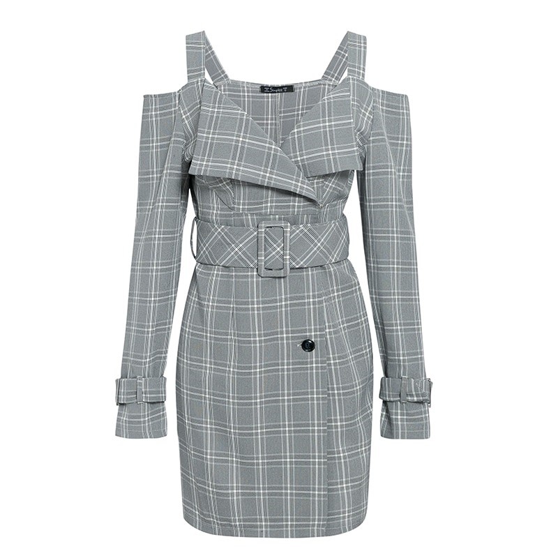 Original efterårskjole med lange ærmer og synlige skuldre.
