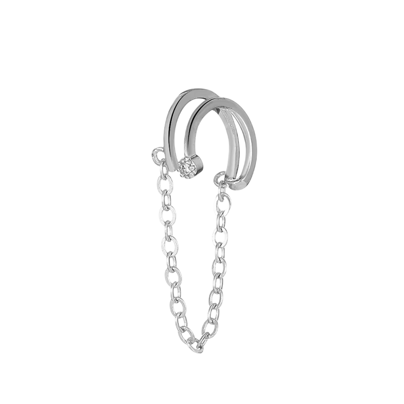 Stilfuld elegant dobbelt ørekrog med kæde til brusk, ideel til moderne punk og hip-hop udseende. Let at bære takket være clips, perfekt til daglig brug. Fuld beskrivelse