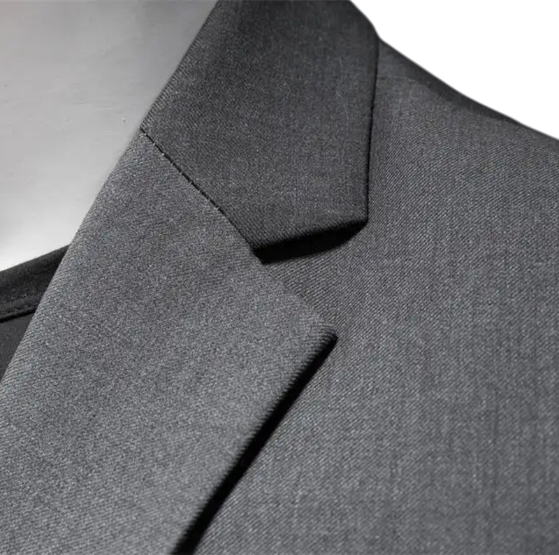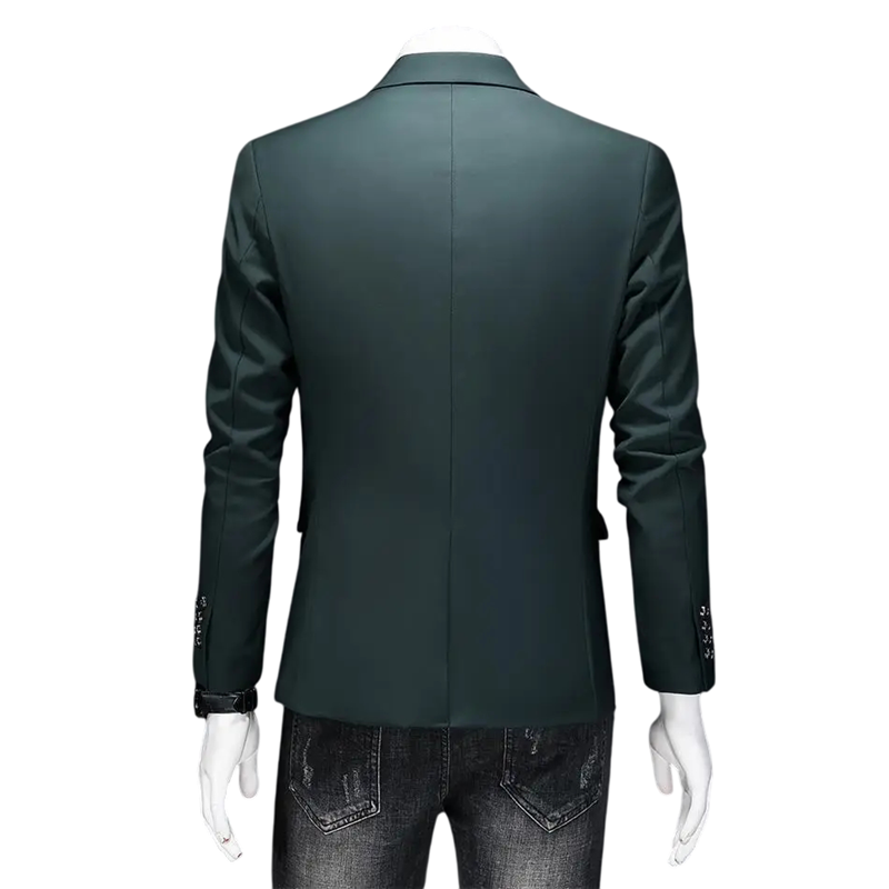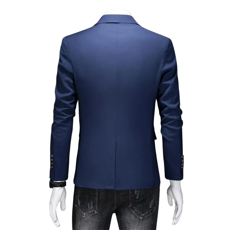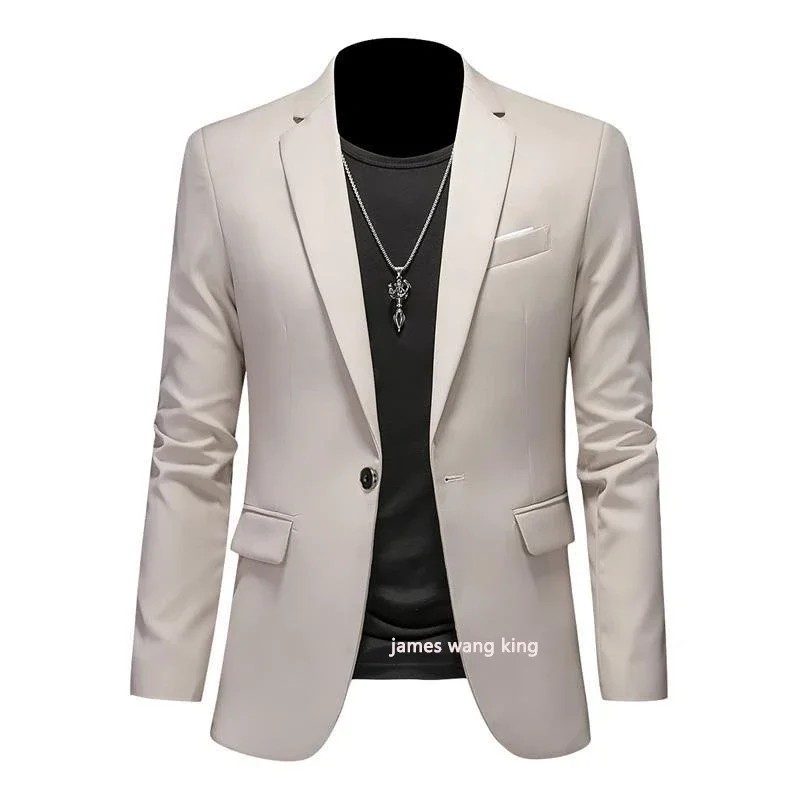 Forside Forside Tøj og tilbehør Herretøj Herre jakkesæt og blazere Herreblazere Elegant herresjakke Åndbar ensfarvet jakke til mænd med lommer og knap Stilfuld jakke til arbejde og fritid