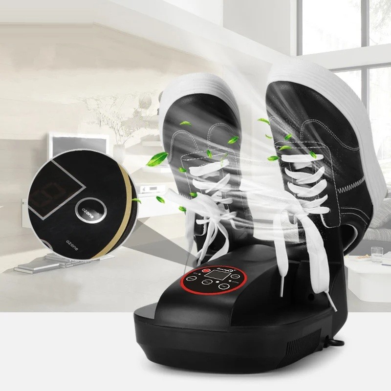 Effektiv elektrisk skoblæser med timer, foldbare arme og jævn opvarmning. Praktisk hjælper i elegant sort.