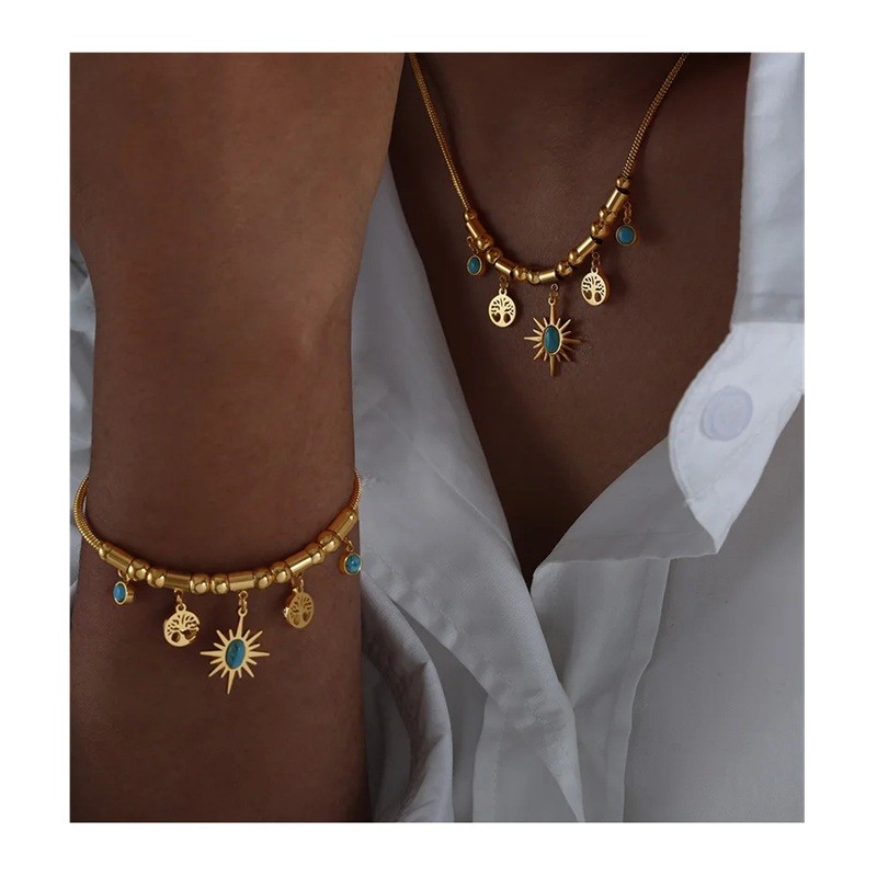 Etno boho sæt Halskæde 40+5 cm og armbånd 17+5 cm Rustfrit stål Luksus smykker til kvinder Bryllups mode accessories