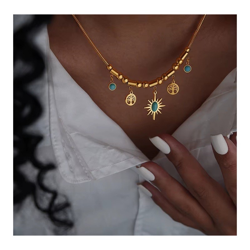 Forside Forside Smykker og ure Damesmykker og ure Damehalskæder Etno boho sæt Halskæde 40+5 cm og armbånd 17+5 cm Rustfrit stål Luksus smykker til kvinder Bryllups mode accessories