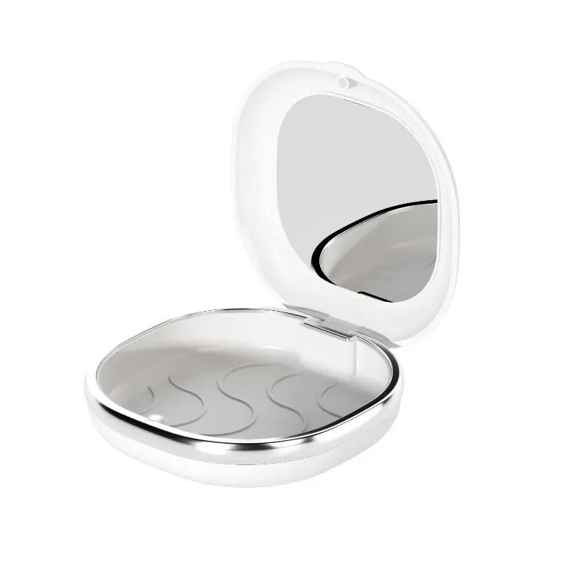 Etui til tandrettere med spejl 8,5 x 8 x 4,4 cm plast ABS hvid med farvet stribe til opbevaring af aligners og tandproteser