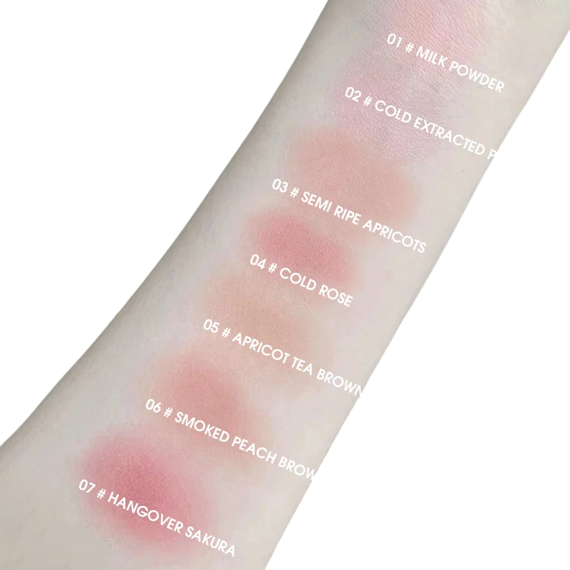 Fin pigmenteret lysende blush med spejl Lukket buet kompakt emballage Pudder blush til naturlig makeup