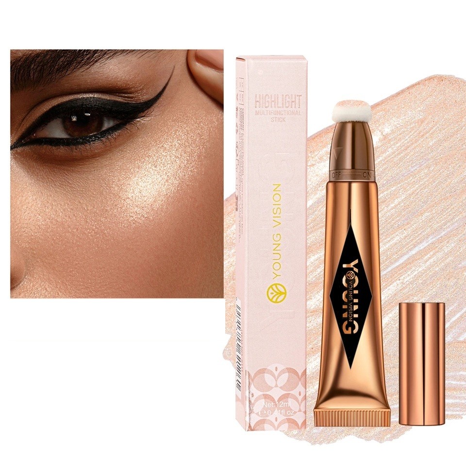 Forside Forside Sundhed og skønhed Ansigt Contouring, bronzere og highlightere Flydende oplysende creme 12 ml Vandafvisende multifunktionel highlighter til ansigt Silkeagtig tekstur Tube med applikator make-up glow effekt