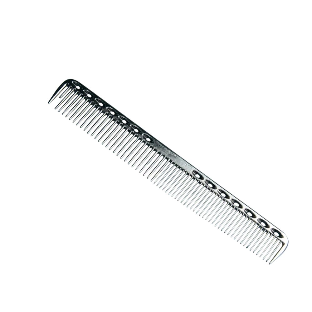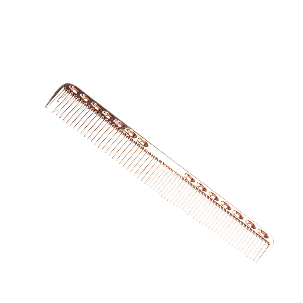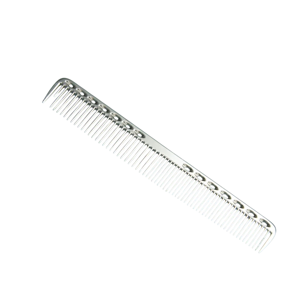 Professionel frisørkam er designet til præcis pleje af hår ved klipning og daglig styling. Takket være kvalitetsudførelsen og den lette konstruktion tilbyder den komfortabel håndtering og maksimal kontrol over frisuren. Aluminiumskroppen sikrer lang levetid og modstandsdygtighed over for slid. Fine tænder muliggør jævn opdeling af hår og skabelse af en præcis skilning uden at trække. Kammen er velegnet til hjemmebrug såvel som professionelle frisørsaloner.