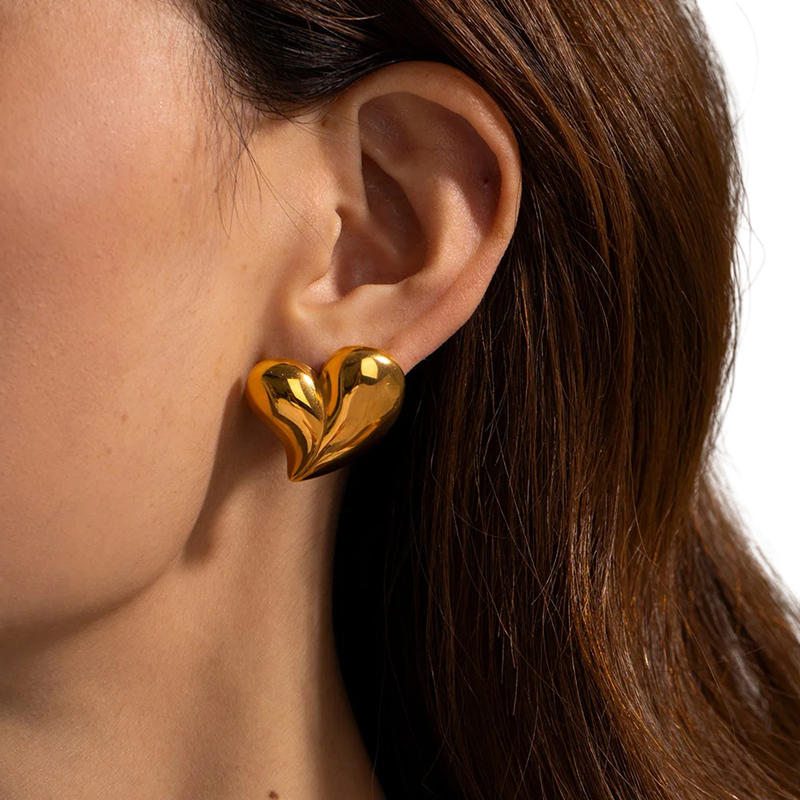 Elegant hjerte sæt i kvalitets rustfrit stål med lang holdbarhed, velegnet til sensitiv hud og daglig brug. Fuld beskrivelse
