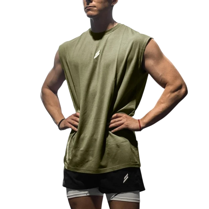 Funktionelt herretanktop Polyester sportmateriale Rund hals Enkeltfarvet design Let pasform Til træning og fritid