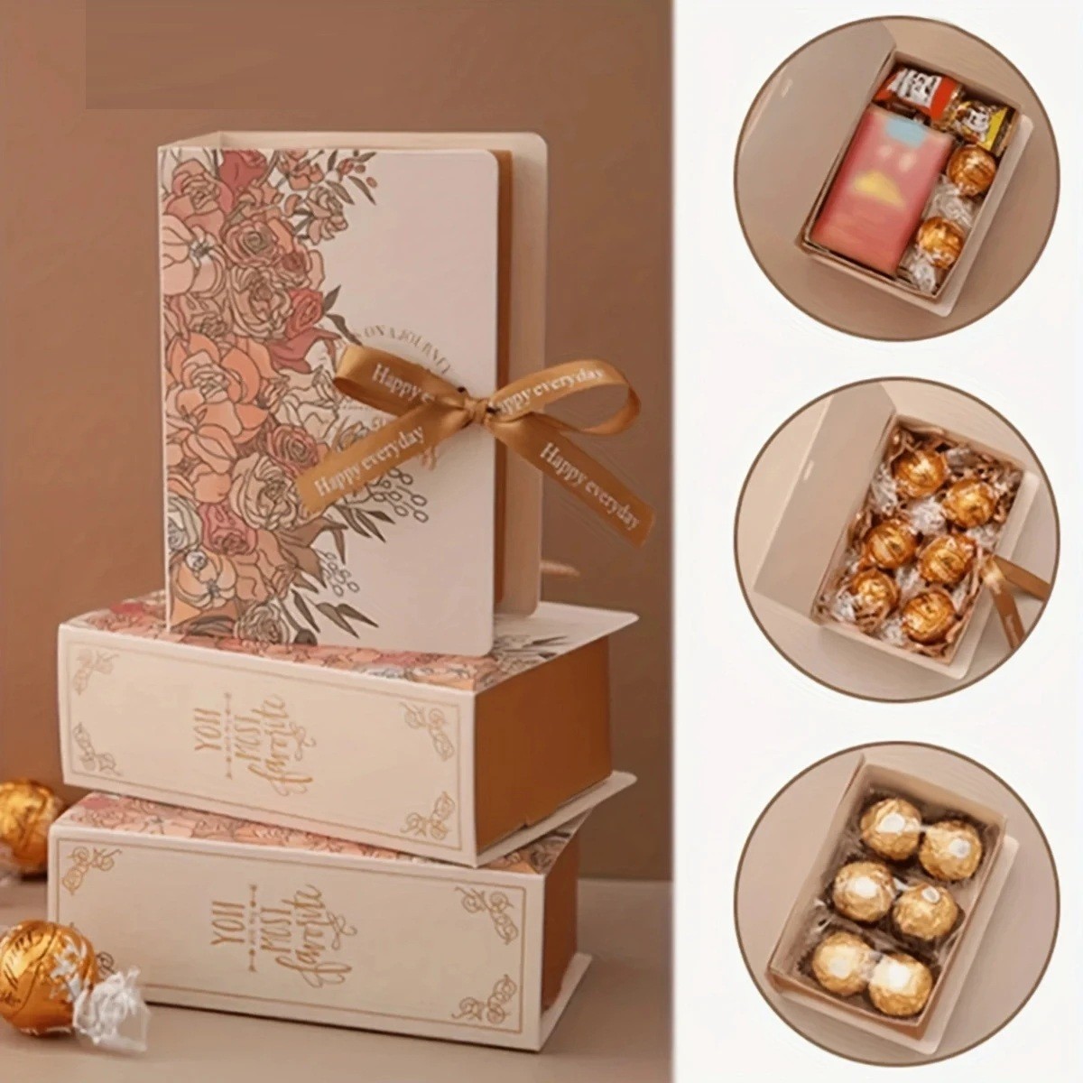 Gaveæske i bogform med blomsterdesign 13 × 9 × 4,5 cm papiræske til smykker, slik eller små gaver