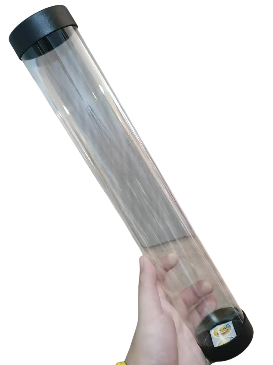 Gennemsigtigt kortetui 38,5 cm PVC materiale Rundt element 6 cm, tykkelse 0,7 mm, samleretui til kort