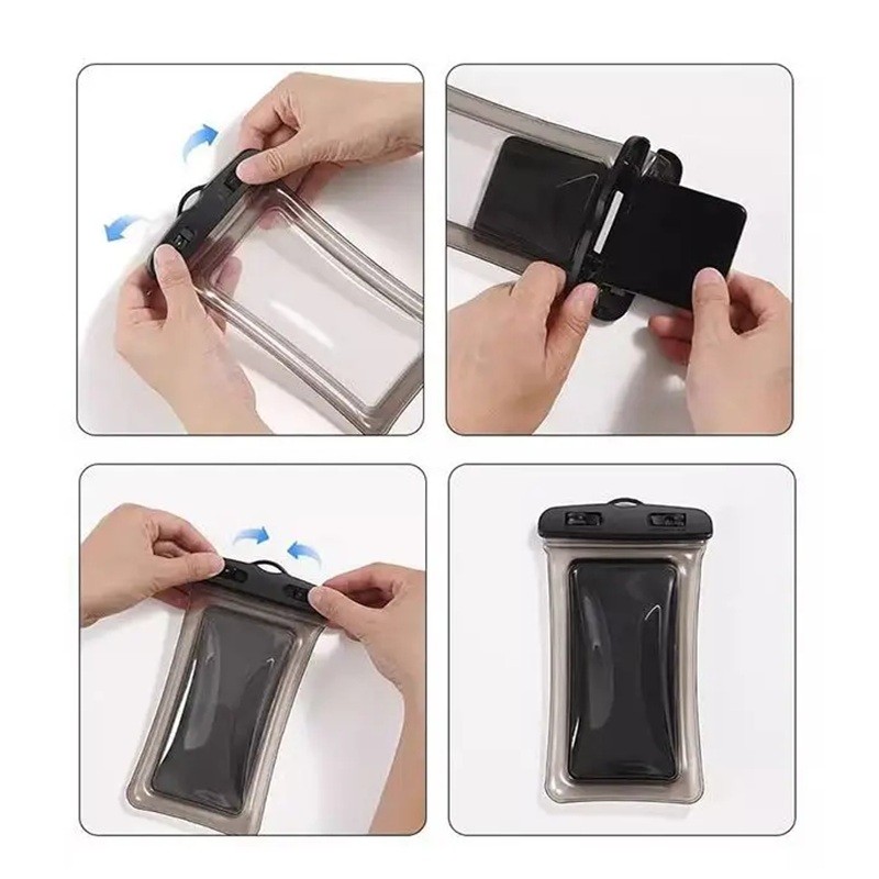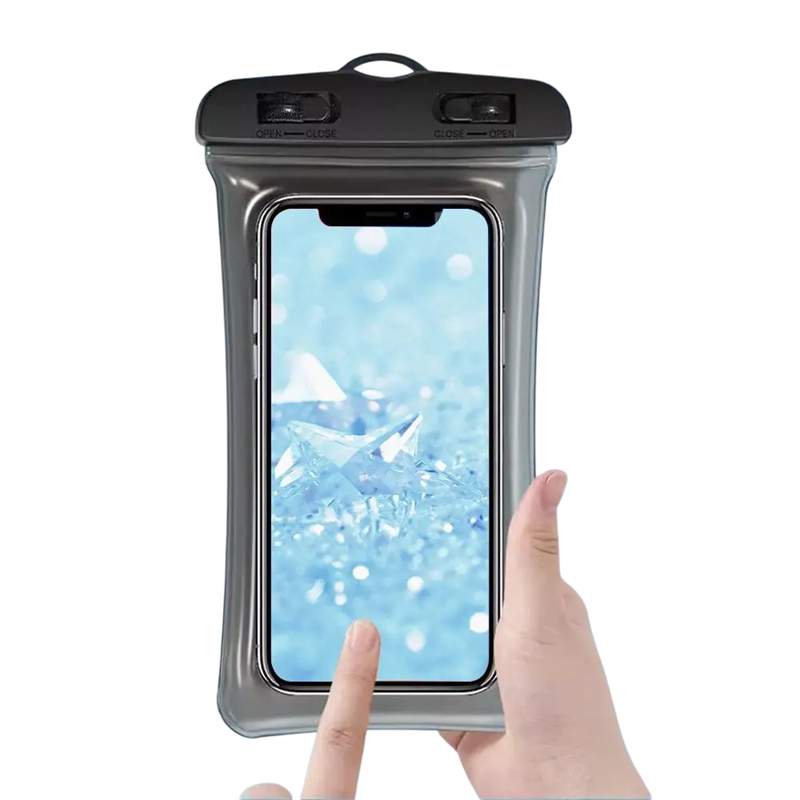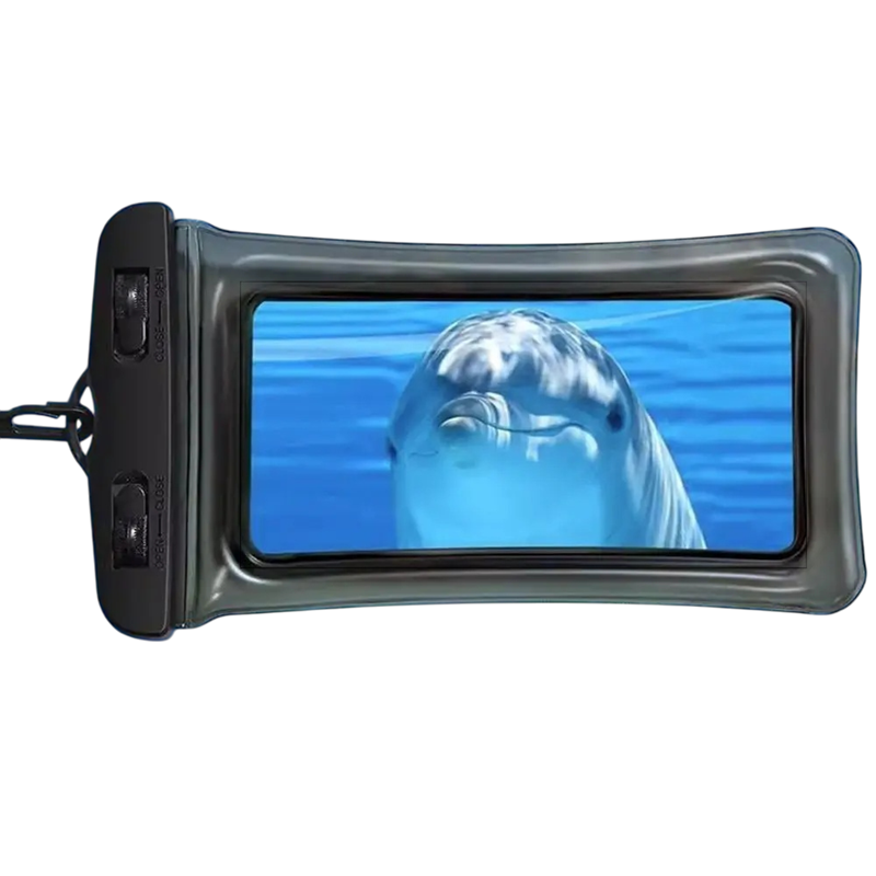 Dette gennemsigtige vandtætte etui er ideelt til at beskytte din telefon under svømning, dykning eller andre vandaktiviteter. Takket være det kvalitets PVC materiale sikrer det høj vandmodstand og beskytter samtidig enheden mod ridser og støv. Etuiet er kompatibelt med telefoner op til størrelsen 7,0" og muliggør fuld betjening af berøringsskærmen selv når det bruges inde i etuiet. Det ergonomiske design og det lukkede sikkerhedssystem sikrer, at telefonen forbliver tør selv ved intens bevægelse i vandet. Medfølgende er en praktisk snor, der muliggør nem bæring af telefonen om halsen eller håndleddet.
