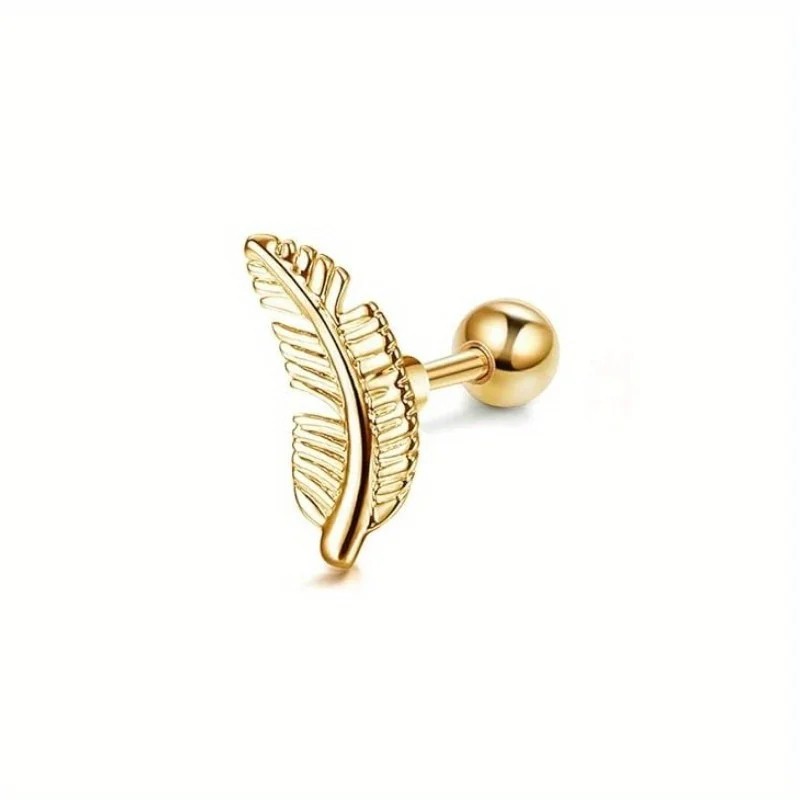 Guld piercing fjer fra kirurgisk rustfrit stål Elegant smykke til kroppen med delikat fuglemotiv