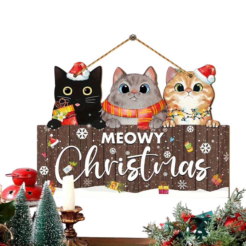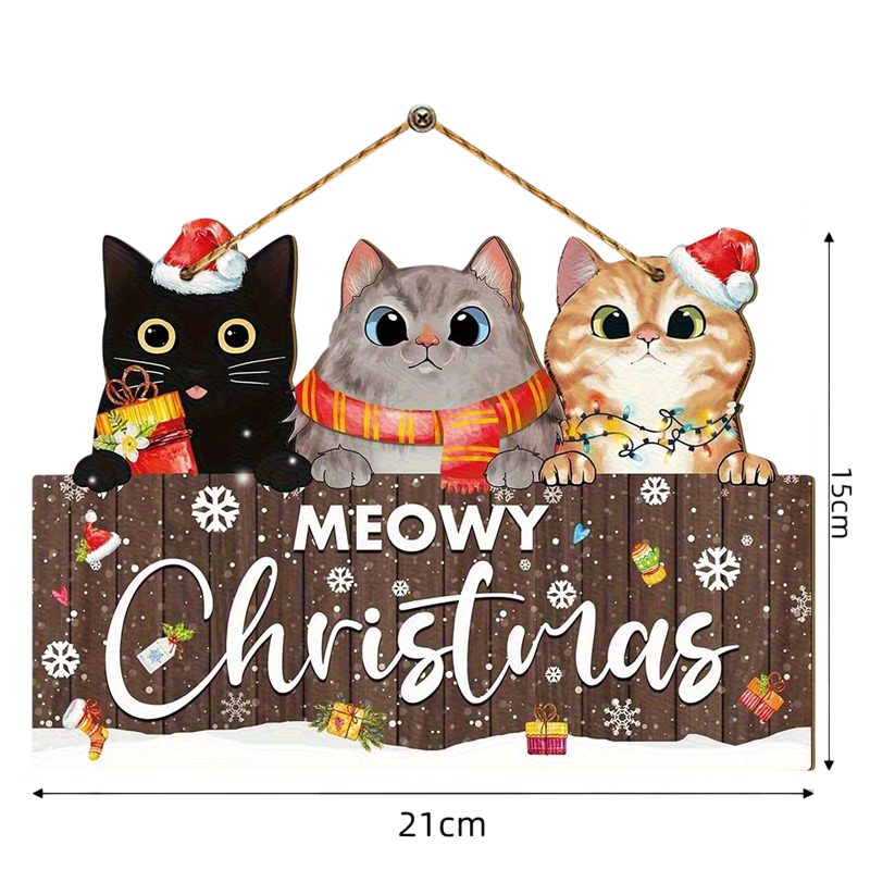 Hængende Juledekoration 21 x 15 cm Tre katte med huer og tørklæder Glad boligudsmykning til stuen til jul