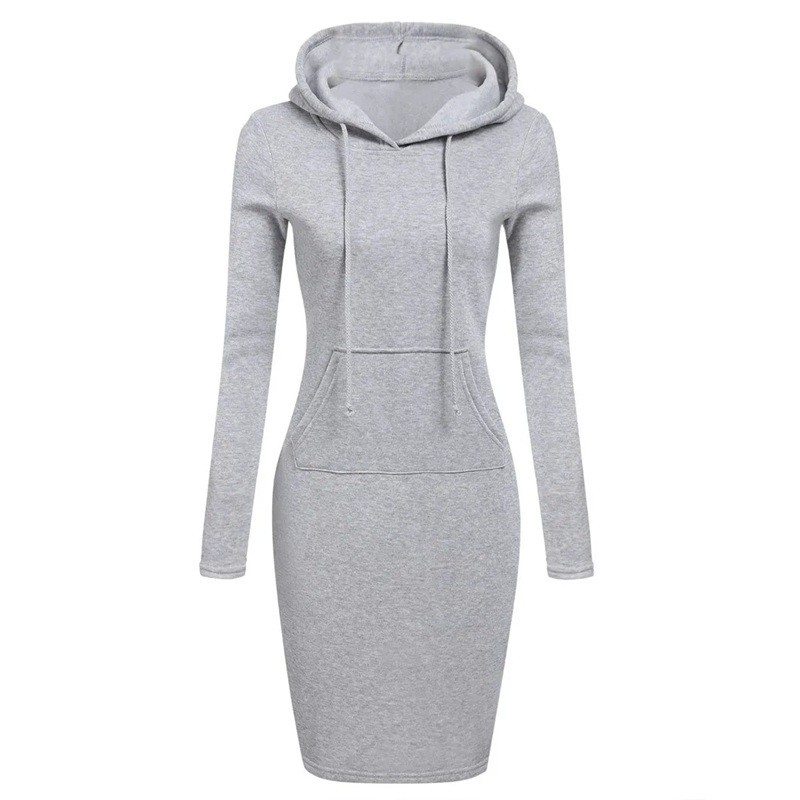 Stilfulde hættetrøje kjoler med kængurulomme og praktisk design. Ideel til komfortabel brug derhjemme, i byen og på kolde dage. Fuld beskrivelse