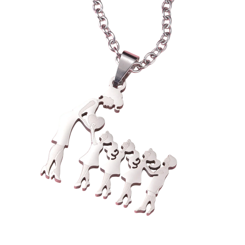 Elegant halskæde med vedhæng af familien repræsenterer et symbol på moderlig kærlighed. Ideel som gave til mor, udtrykker den følelser, omsorg og samhørighed. Fuld beskrivelse