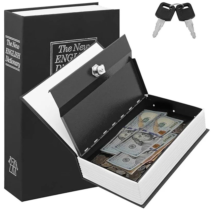 Denne hemmelige pengeskab i form af en bog er en praktisk og diskret løsning til sikker opbevaring af kontanter, smykker eller små værdigenstande. Takket være det realistiske udseende, der minder om ordbogen The New English Dictionary, fremstår den som en almindelig bog.