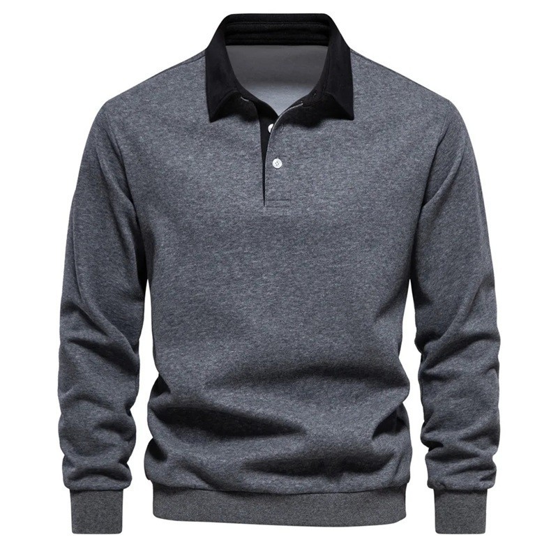 Herre bomulds sweatshirt med krave og halv knaplukning Ensfarvet polo med lange ærmer Behagelig elegant model til hverdag