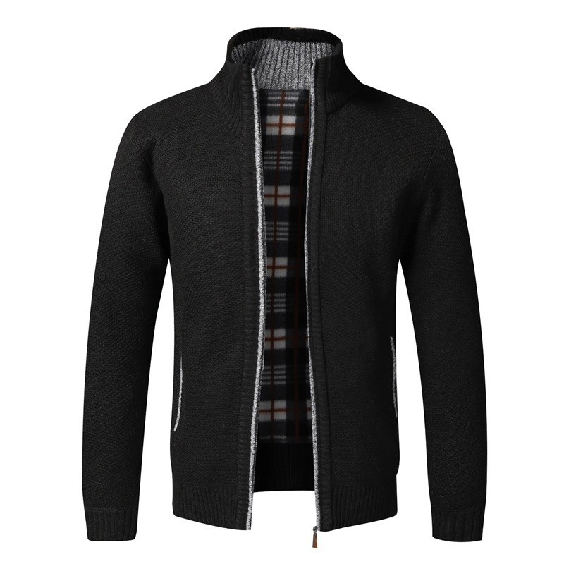1× herre cardigan med lynlås og rullekrave (valgt farve og størrelse)