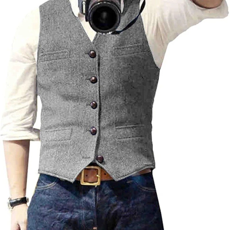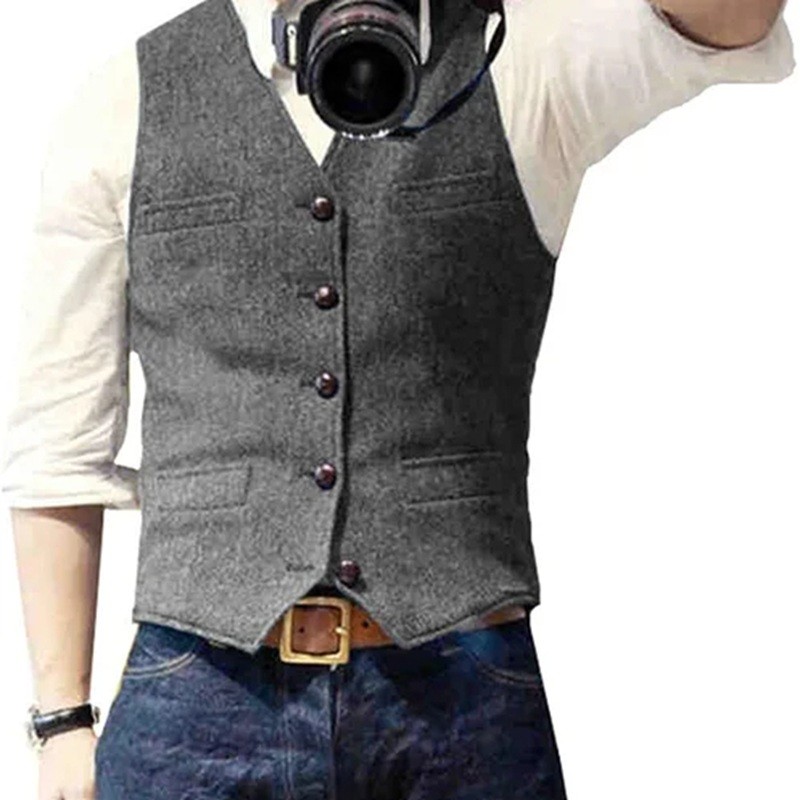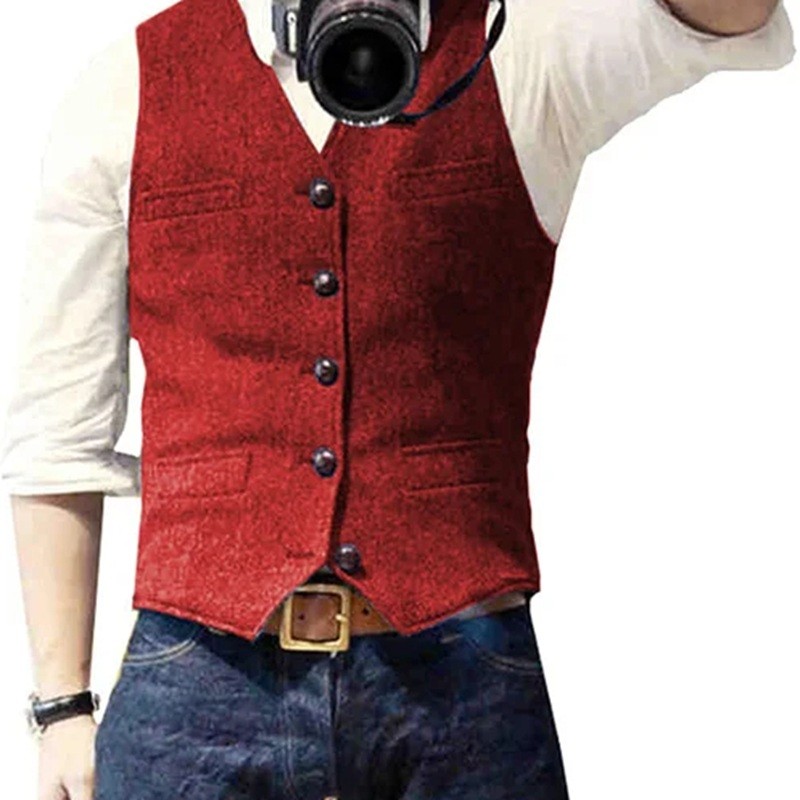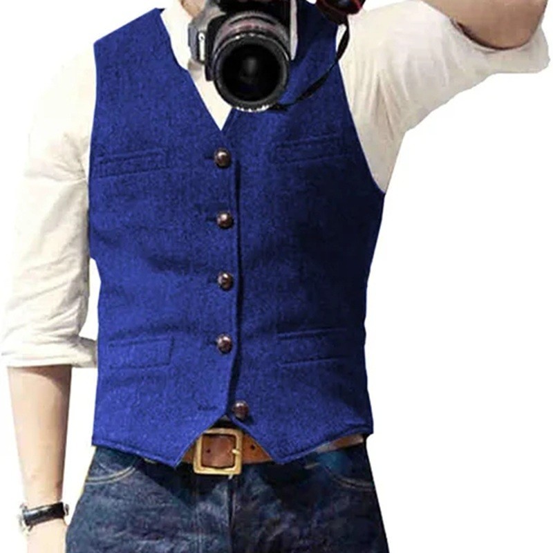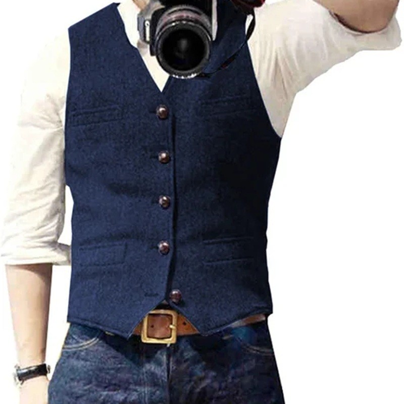 Stilfuld herre vest med lommer og knapper lavet af kvalitetsmaterialer, ideel til formelle og afslappede outfits i forskellige farver. Fuld beskrivelse