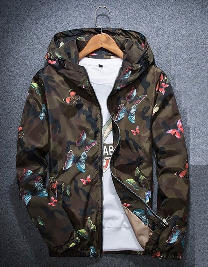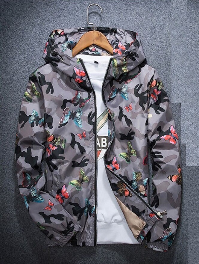 Herre forårs-/efterårsjakke med sommerfuglemotiv