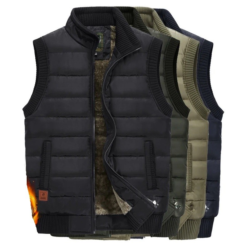 Herre isoleret vest med pels indeni og lommer med krave og lynlås polyester bomuld til vandring, arbejde udendørs og hverdagsbrug
