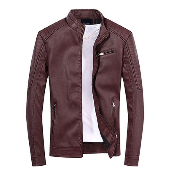 Herre læderjakke med pelskant J2067
