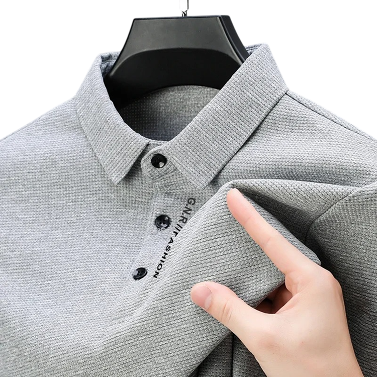 Herre polo med lange ærmer, krave og knapper, ensfarvet elegant skjorte i polyester til daglig brug