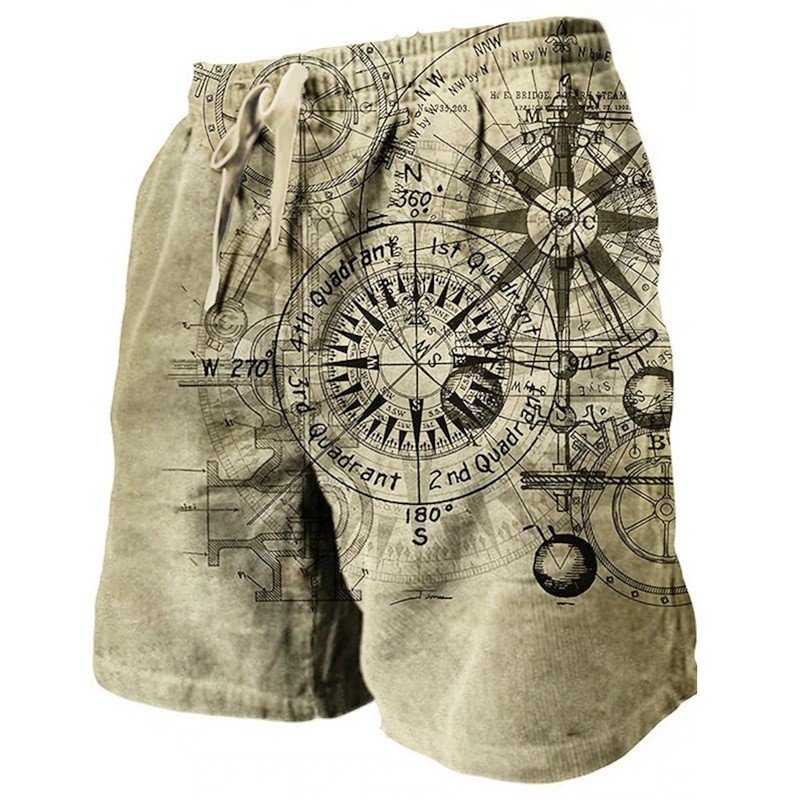 Letvægts shorts badetøj med kompasmotiv, snøre og lommer. Hurtigttørrende polyester ideel til strand og pool. Fuld beskrivelse