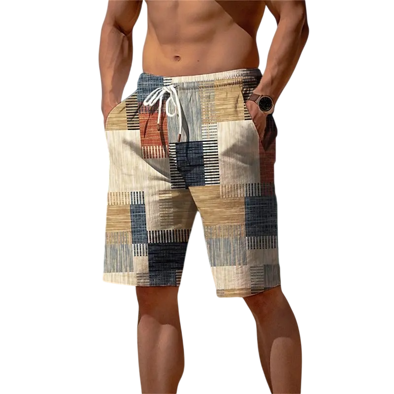 Herre shorts badetøj Ternede mønster Snøre i taljen Hurtigttørrende polyester Letts materiale Sommer badning strand
