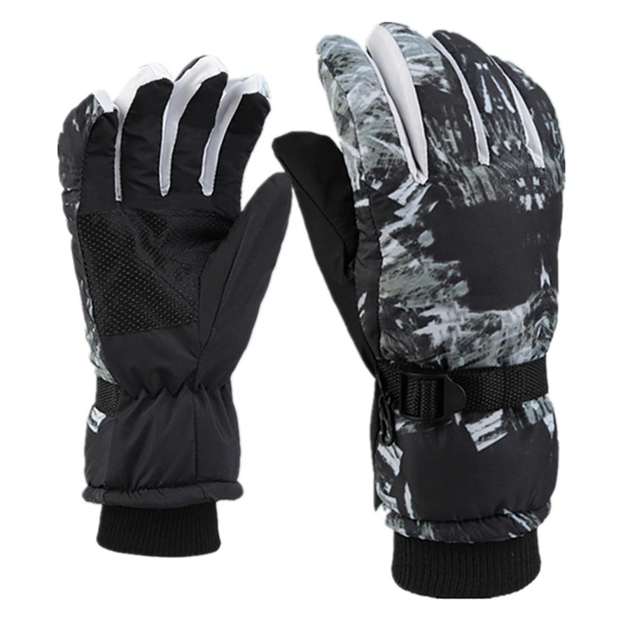 Herre skihandsker sort-hvid mønster Touch Universal størrelse Isolerede sports handsker Polyester Holdbare varme handsker til vinteraktiviteter