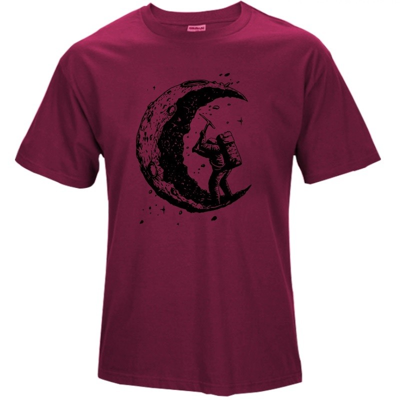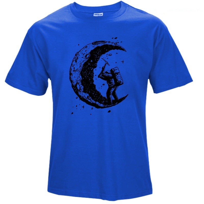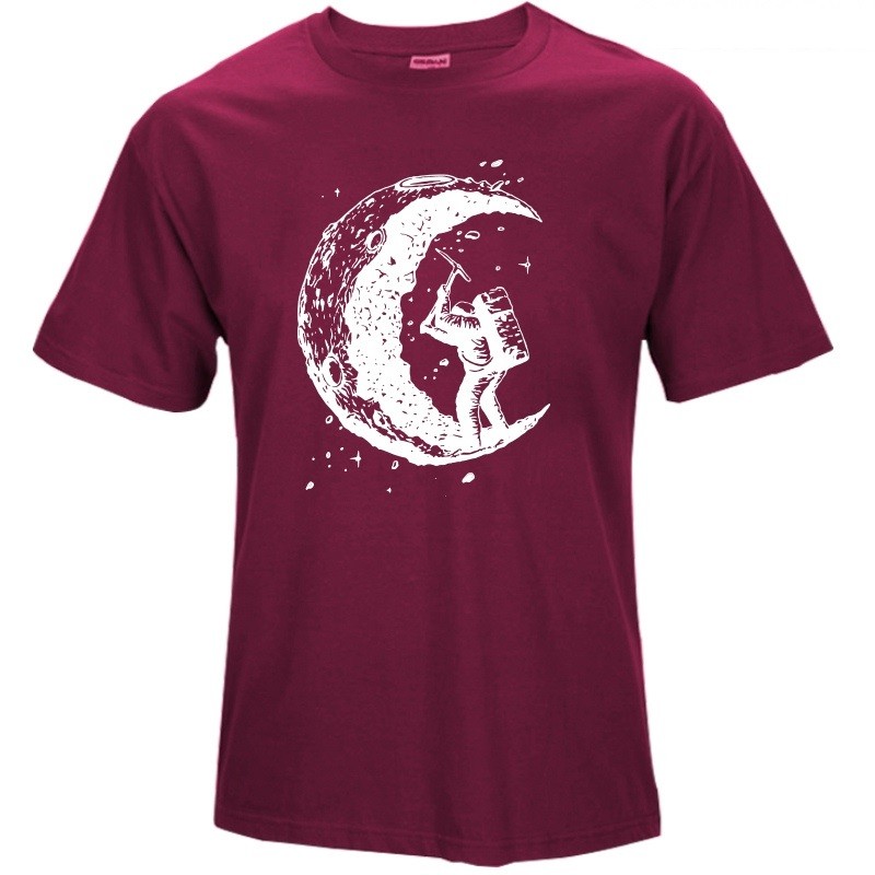 Vi har dette smukke stilfulde t-shirt, der viser en astronaut, der sparker til månen med en hakke.