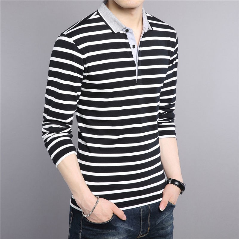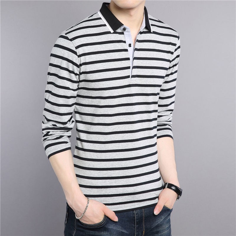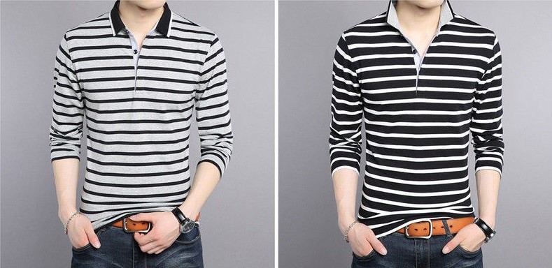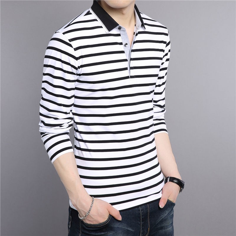 Med denne stribede polo T-shirt vil du se fantastisk ud og samtidig være elegant.