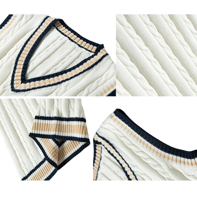 V-halsen er et karakteristisk element ved denne type tøj. Den muliggør en komfortabel kombination med en skjorte med krave og skaber samtidig et klassisk look, der er velegnet til både afslappet stil og mere formelle kombinationer.