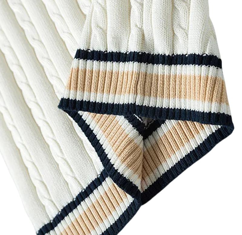 Denne vest er populær for sin enkelhed, alsidighed og evne til at give outfittet en unik karakter. Elegant kantning med farvede striber tiltrækker opmærksomhed og adskiller den fra klassiske ensfarvede veste. Takket være det praktiske ærmeløse snit giver den bevægelsesfrihed og muliggør komfortabel lagdeling uden at virke klodset.