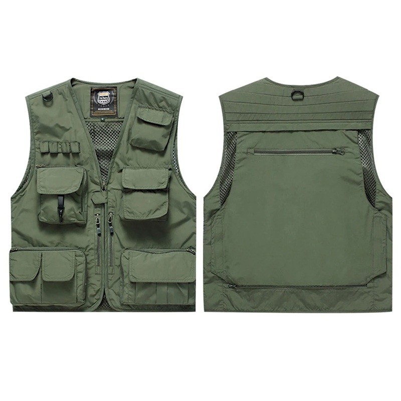 Herre vest med flere lommer og lynlås i polyester til fiskeri, vandreture, fotografering og udendørs aktiviteter