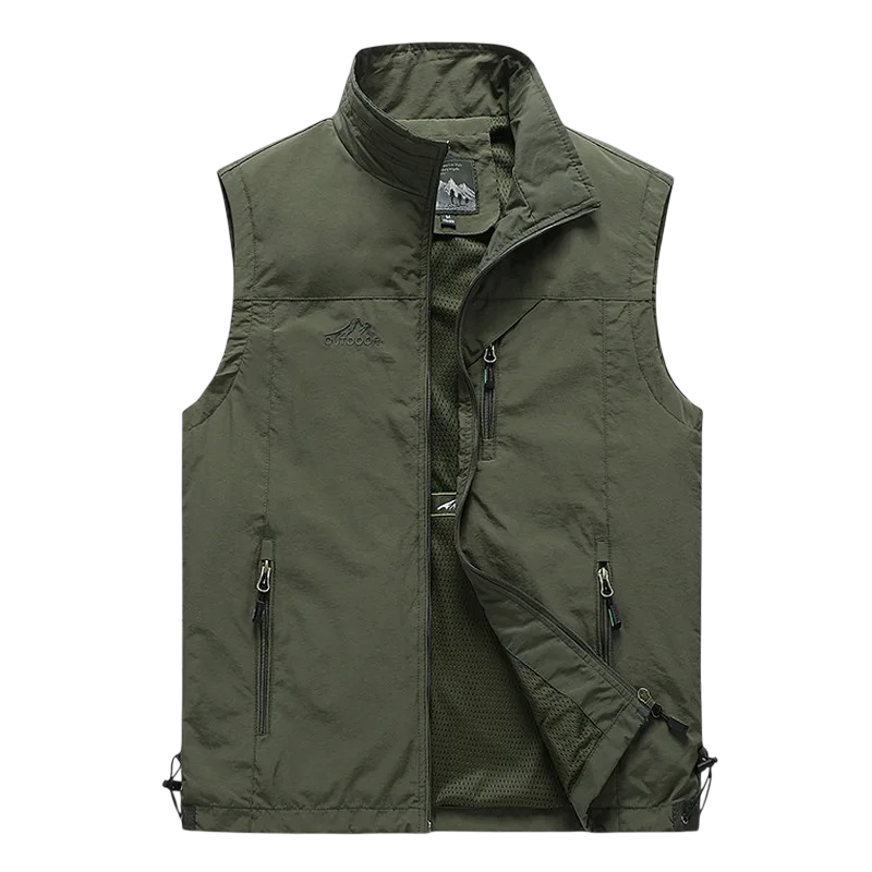 Herre vest med krave og lynlåslommer til lynlåslukning polyester til vandreture, udendørs aktiviteter og daglig brug