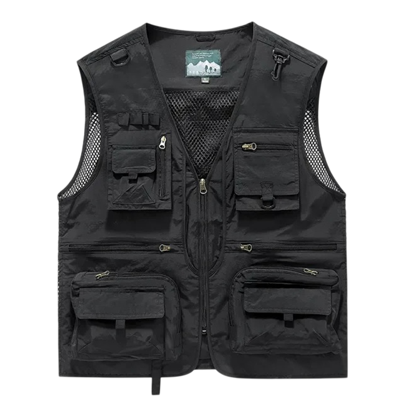 Herre vest med lynlåslommer og lynlåslukning i nylon og polyester til fiskeri, vandreture, udendørs arbejde og daglig brug