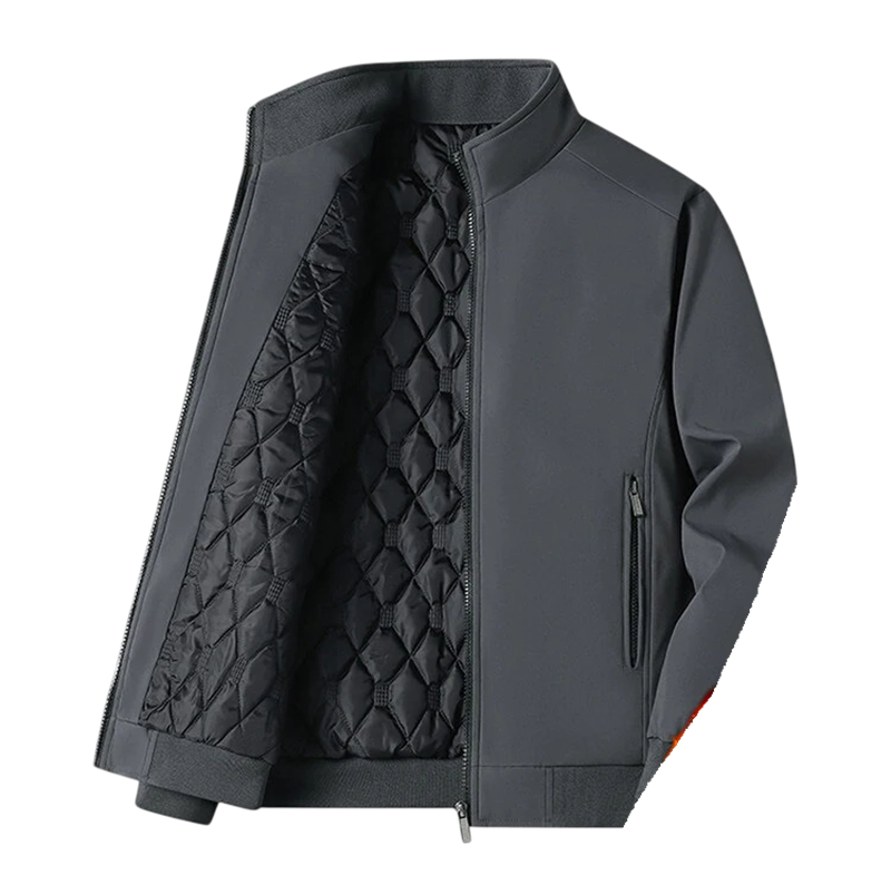 Herre vinterjakke med lynlås og lommer Varm quiltet jakke til koldt vejr Behagelig herrejakke i polyester til daglig brug