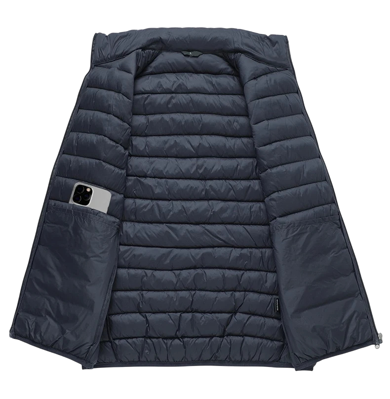 Unisex herre vinterjakke med vindafvisende design, lynlås og stilfuld broderi på ærmet. Holdbart polyester velegnet til daglig vinterbrug. Fuld beskrivelse