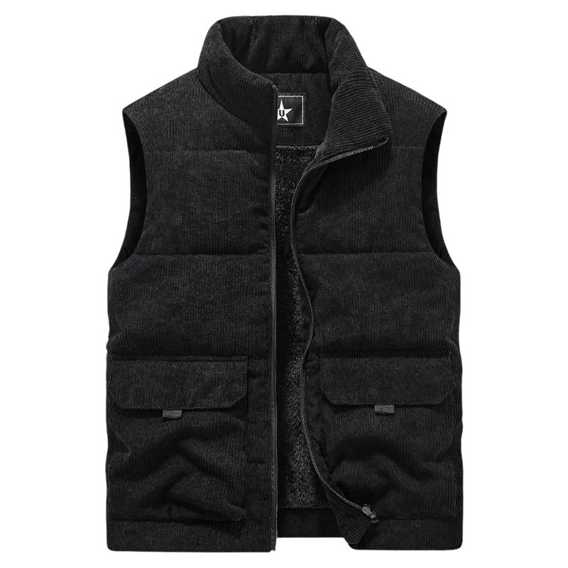 Herre vintervest med krave og lynlås med indvendig pels og lommer i bomuld polyester til daglig brug i koldt vejr