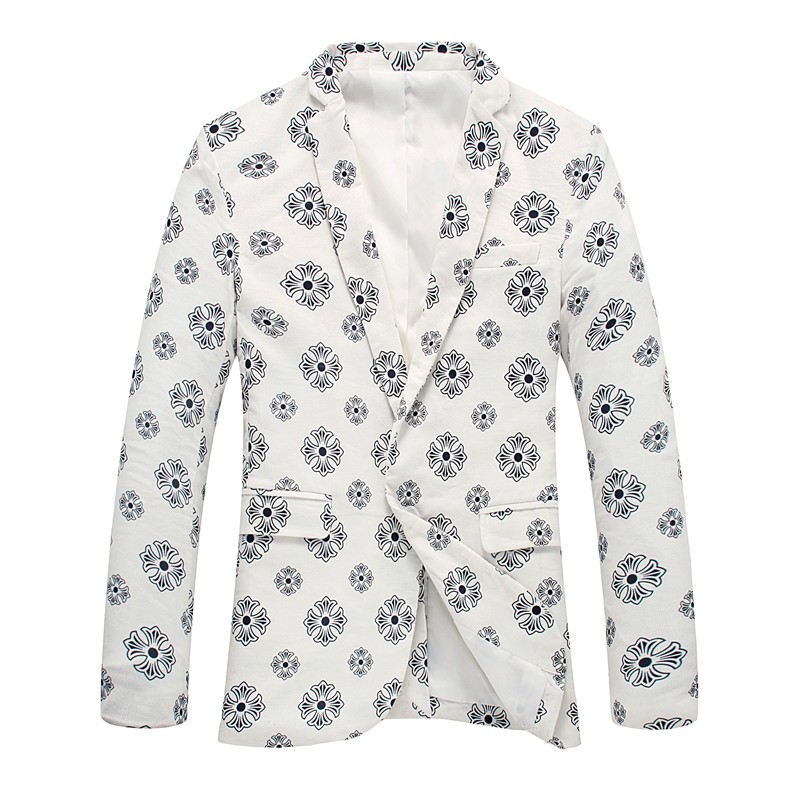 Stilfuld herrejakke med print til afslappede begivenheder.