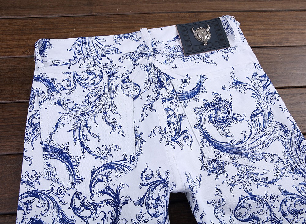 Forside Forside Tøj og tilbehør Herretøj Herrejeans Herrejeans i blå og hvid i et interessant design
