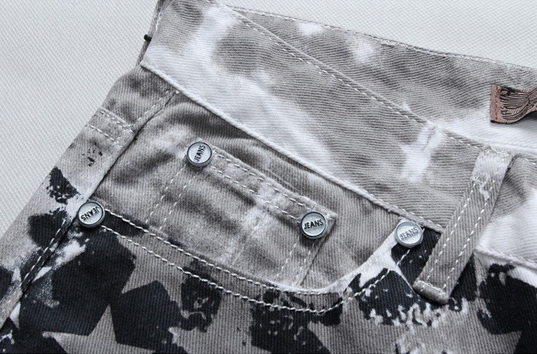 På jeansene er der blå stjerner og hvide striber, der repræsenterer flaget for denne smukke stat.