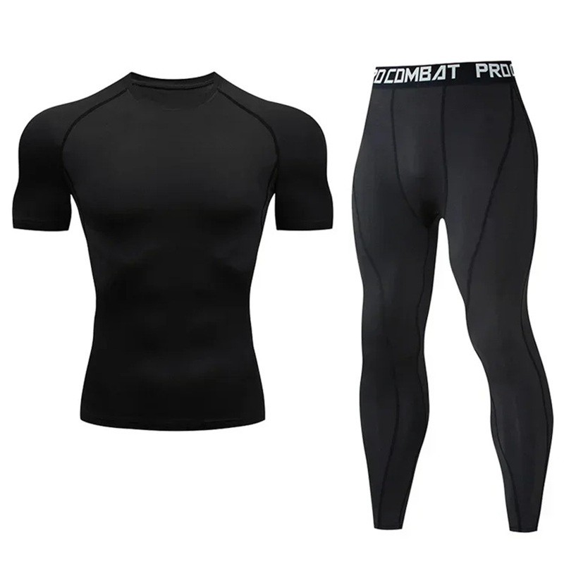 Forside Forside Tøj og tilbehør Herretøj Herre T-shirts Herre funktionelle T-shirts Herresæt med leggings og T-shirt med korte ærmer, rund hals, polyester