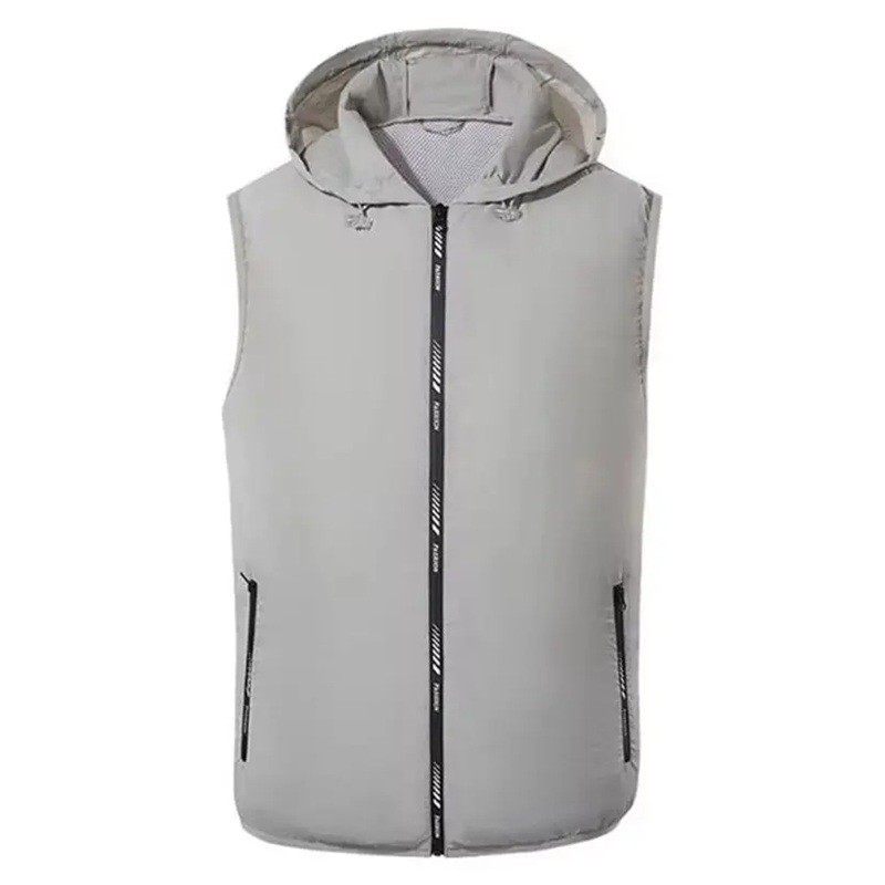Herresportsvest med hætte Letvægts vandtæt lynlåsvest med lommer Udendørs løbevest ærmeløs til mænd