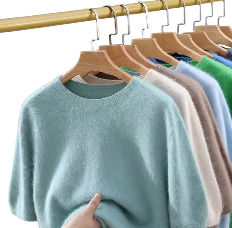 Herresweater i cashmere med korte ærmer og O-udskæring Fløjlsagtig ensfarvet sweater Elegant sommermode Forskellige farver