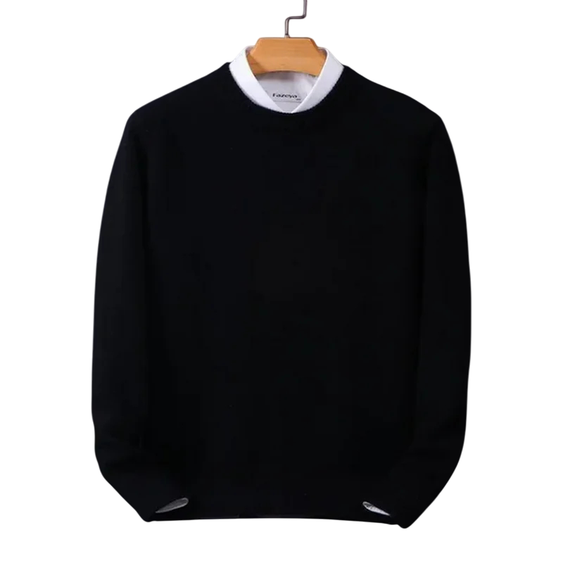 Denne herresweater repræsenterer den perfekte kombination af komfort, stil og praktisk anvendelse. Fremstillet af kasmir og bomuldsblanding, tilbyder den enestående blødhed, komfort og samtidig lang holdbarhed. Ensfarvet design sikrer et tidløst udseende, der nemt kan kombineres med forskellige typer tøj – fra jeans til formelle bukser. O-halsen fremhæver sweaterens klassiske karakter og gør den til et alsidigt stykke, der er passende til forskellige anledninger.