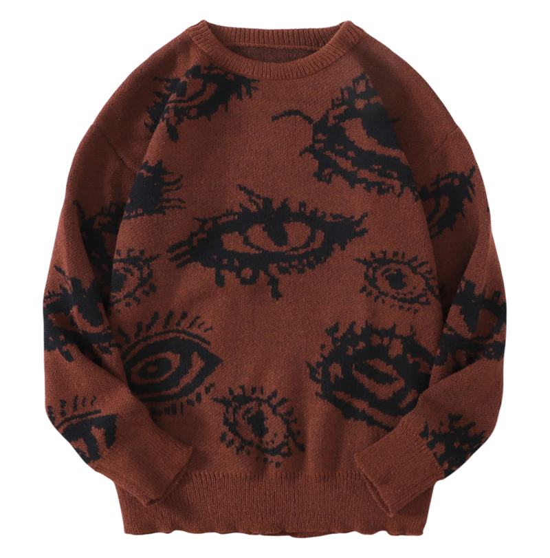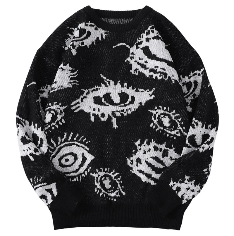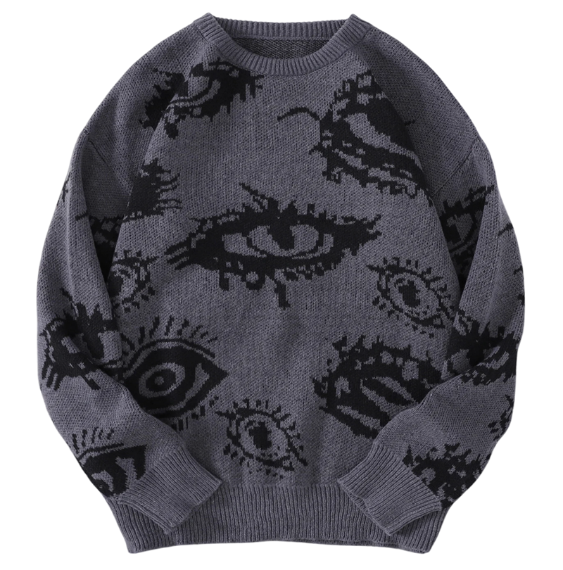 1× herresweater med rund hals og abstrakt øje mønster (valgt farve og størrelse)