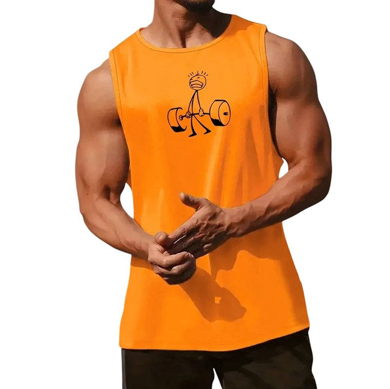 Herretanktop i let polyester med motiv af figur der løfter vægte tilbyder komfort, hurtig tørring og er ideel til sport og sommer. Fuld beskrivelse
